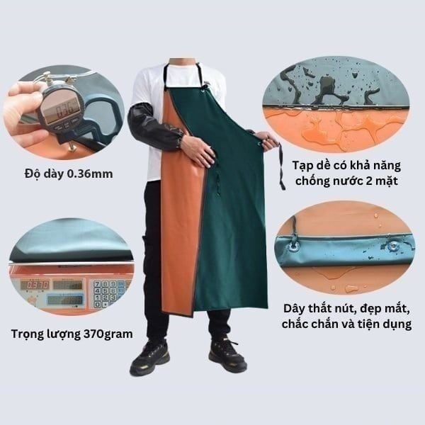 Tạp dề chống thấm nước, chống hóa chất, chống dầu và axit là một sản phẩm đáng tin cậy để sử dụng trong các môi trường công nghiệp như nhà máy thực phẩm, nhà mát, nhà bếp nhà hàng và ngoài chợ.