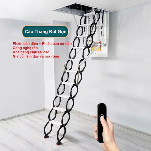 Cầu thang xếp gác mái (thang gác xếp) thông minh bằng hợp kim bền, chắc