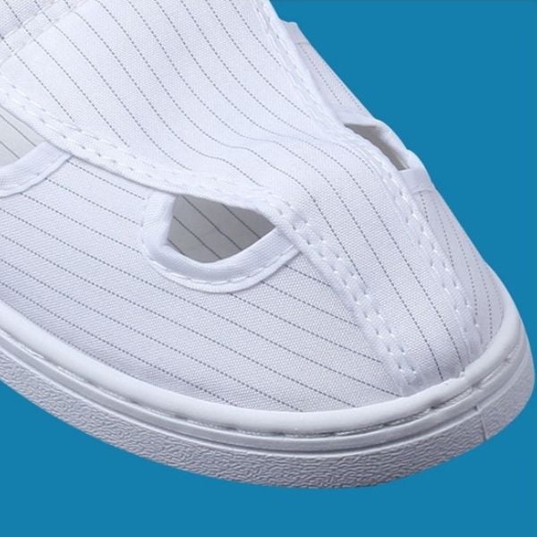 Giày phòng sạch chống tĩnh điện 4 lỗ màu trắng sọc