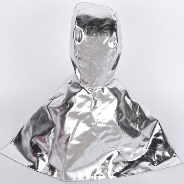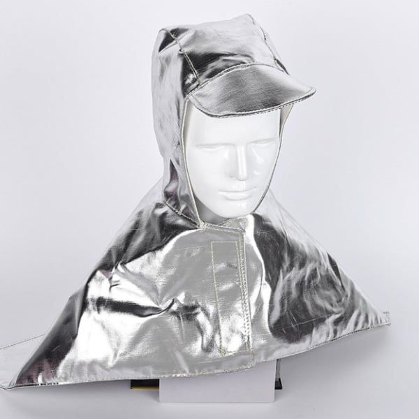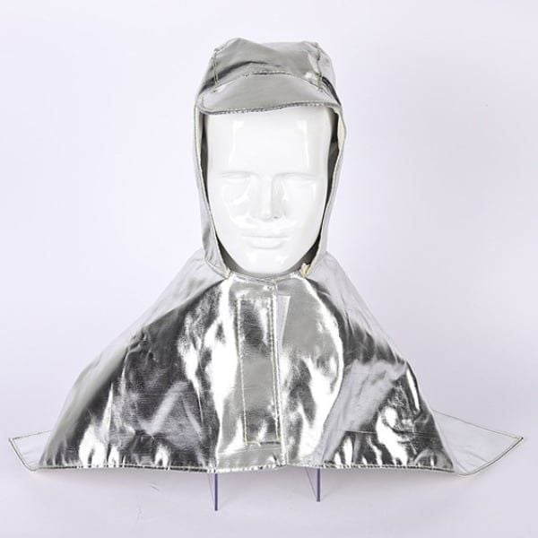 Mũ trùm đầu choàng vai tráng nhôm chịu nhiệt được thiết kế chuyên dụng có khả năng cách nhiệt và chống cháy phù hợp trong các môi trường làm việc khắc nghiệt như lò hơi, luyện kim hay đúc, việc bảo vệ phần đầu và vai khỏi nhiệt độ cao và tia lửa.